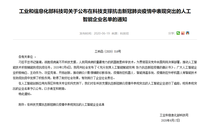 同时,www.凯发k8(中国)AI疫情防控设备、“深目”系统、“天图”系统等3款产品/方案入选了国家人工智能标准化总体组秘书处发布的第一批34款有助于疫情防控的人工智能产品和解决方案名单。